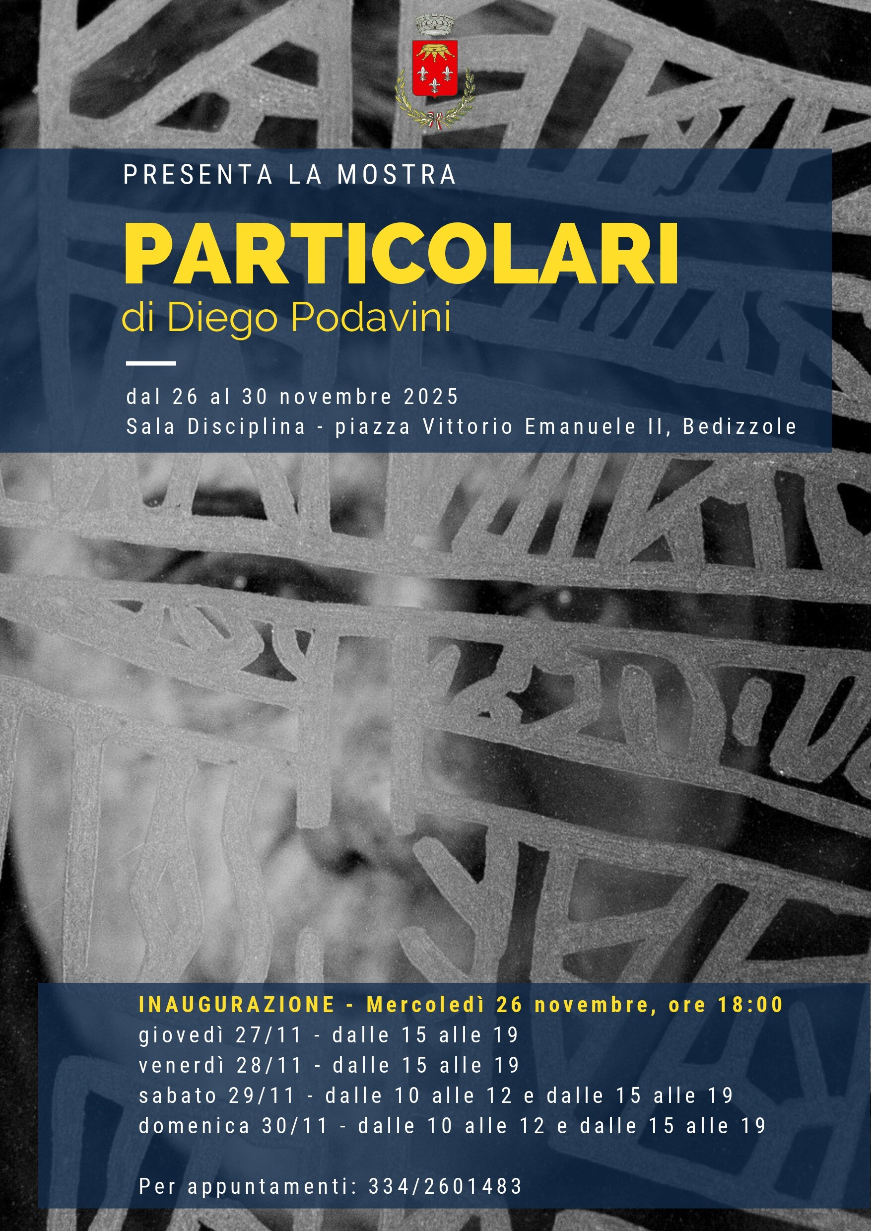 Dal 26 al 30 novembre vi aspetta la mostra "Particolari" di Diego Podavini presso la Sala della Disciplina, Piazza Vittorio Emanuele II a Bedizzole.